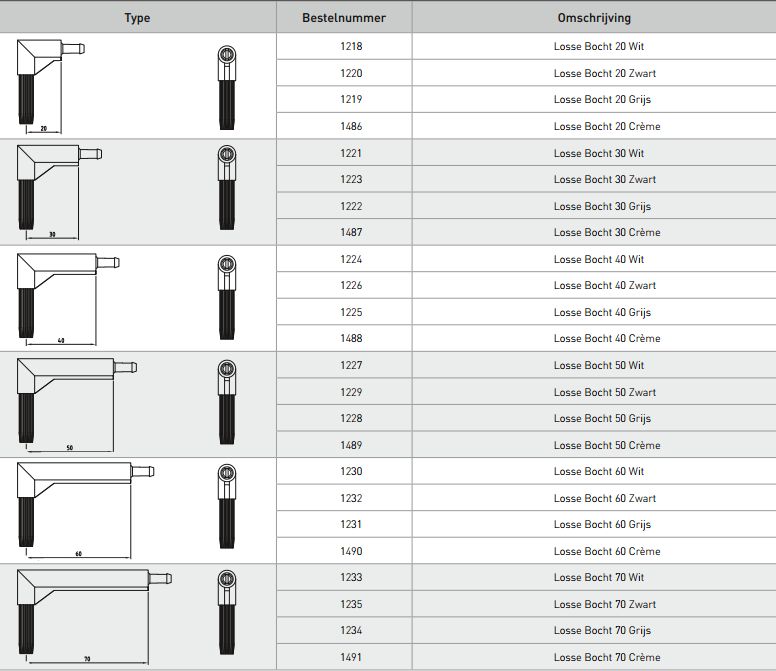 Indien gewenst andere Bochtlengte of Rechte Stangclip ( Standaard met B/30mm )